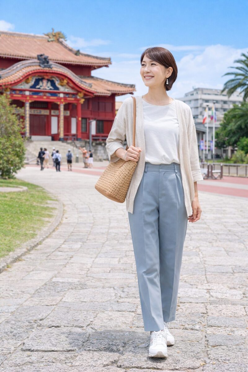 40代・50代女性なら、半袖+羽織りの調整型コーデが最も安心です。