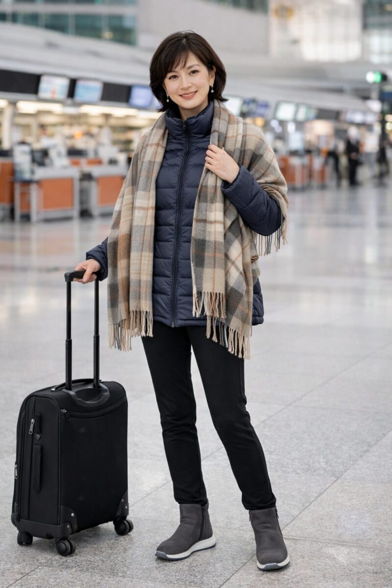 ミドル世代女性の冬旅行や街歩きに安心して選べる一着です。