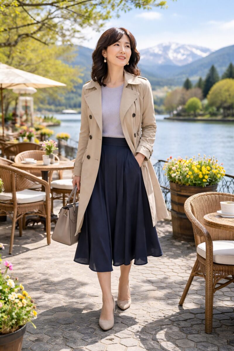 40代50代の春コーデにも自然になじみ、上品に仕上がります。